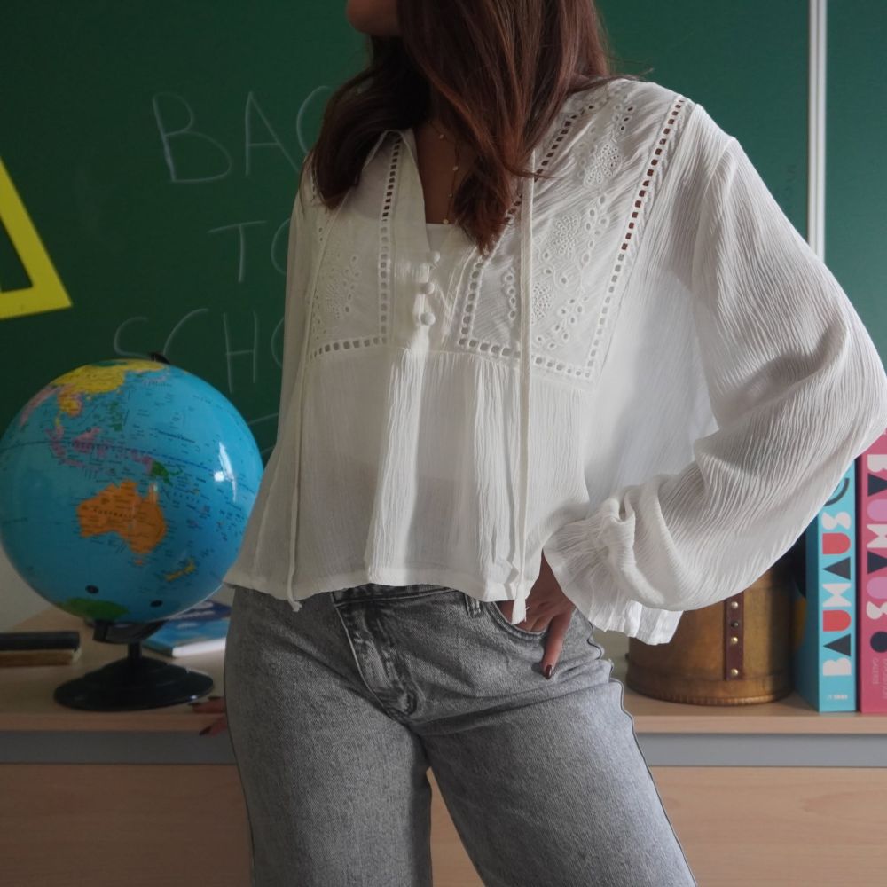 Élégante, légère et bohème, la blouse Lilly est la pièce parfaite pour sublimer vos looks de saison. Confectionnée dans une matière fluide et vaporeuse, elle se distingue par ses détails brodés délicats et ses petits boutons recouverts qui ajoutent une touche raffinée et féminine. Son encolure légèrement évasée avec liens à nouer apporte une allure romantique, tandis que sa coupe ample assure un confort absolu.