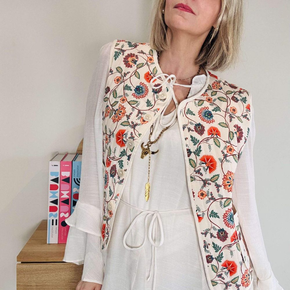 Le boléro Opaline est une pièce délicate et féminine qui sublime instantanément toutes vos tenues. Confectionné dans un tissu clair orné d’un imprimé floral raffiné, il apporte une touche bohème chic tout en restant facile à associer. Sa coupe structurée sans manches contraste élégamment avec la légèreté d’une robe ou d’un top fluide.