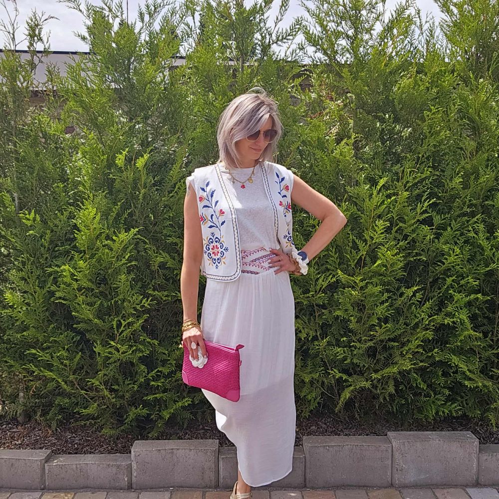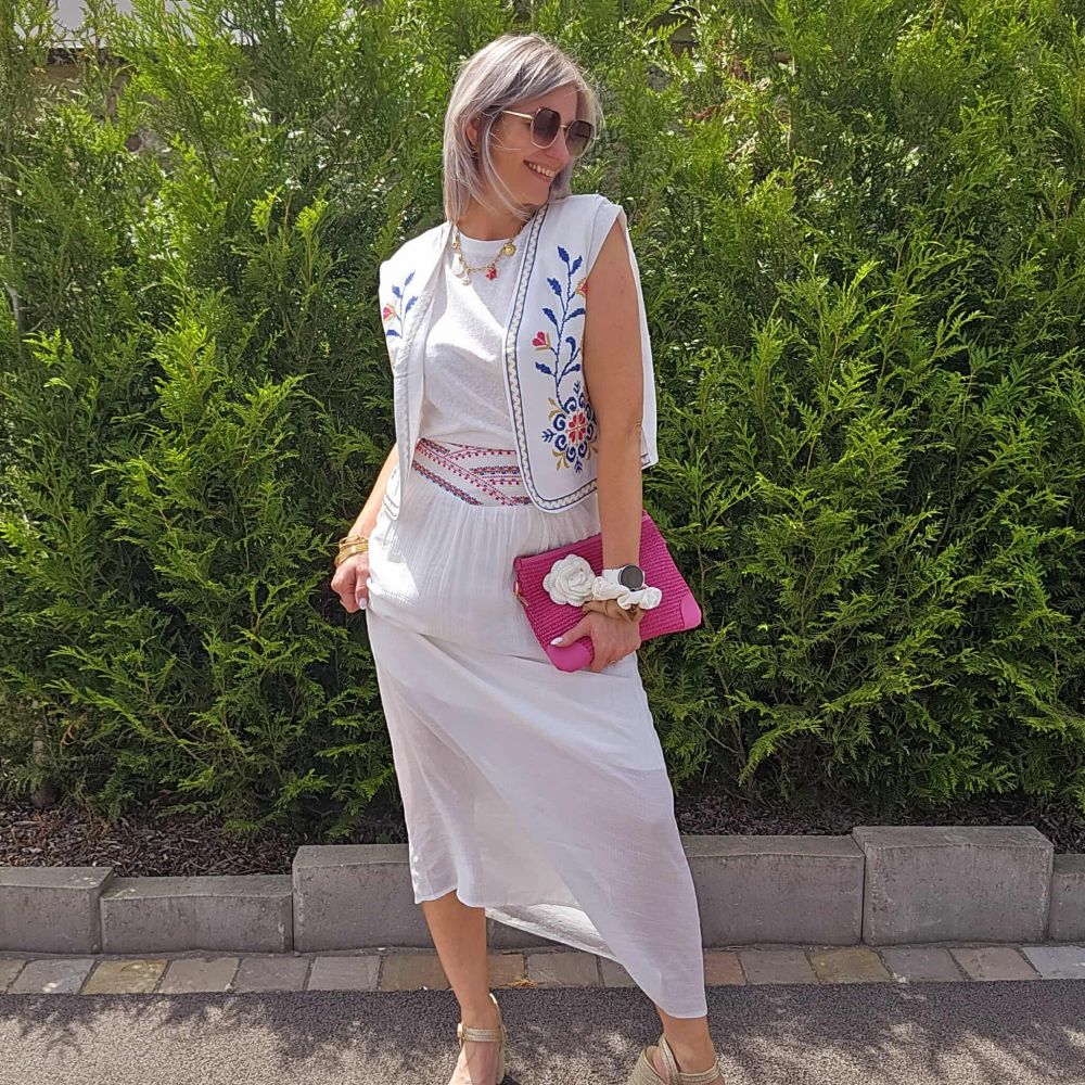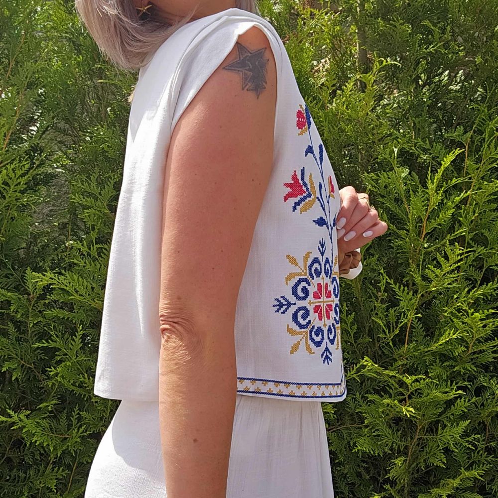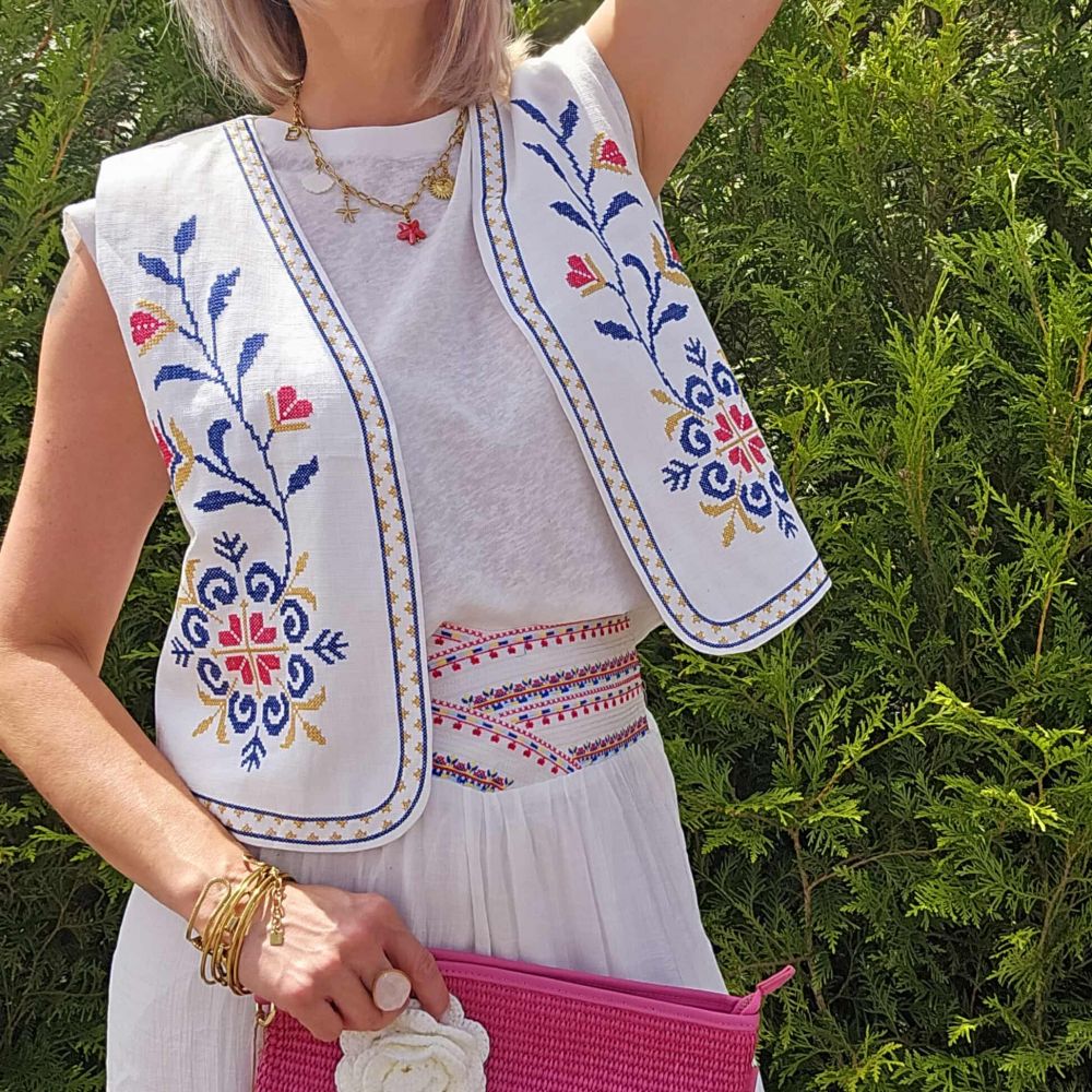 Notre Boléro Paloma, esprit ethnique, résolument bohème. Ses fleurs brodées délicates respirent la liberté et la féminité. Dos uni. Différents coloris comme le bleu marine, le jaune moutarde, le rose fuschia contrastent avec le blanc immaculé du boléro.