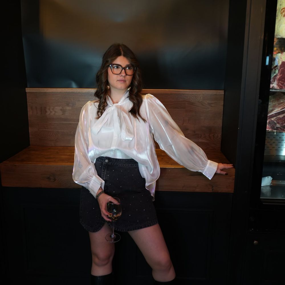 La Blouse Ariana est une chemise blanche ultra tendance, sublimée par un effet chrome/holographique discret qui capte la lumière avec élégance. Sa matière légèrement transparente apporte une touche féminine et raffinée, parfaite pour un look chic sans effort.
