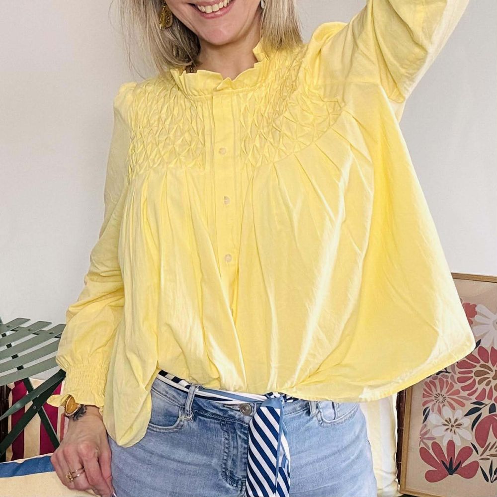 Chemise BETTY – Chemise jaune col montant avec détails plissés