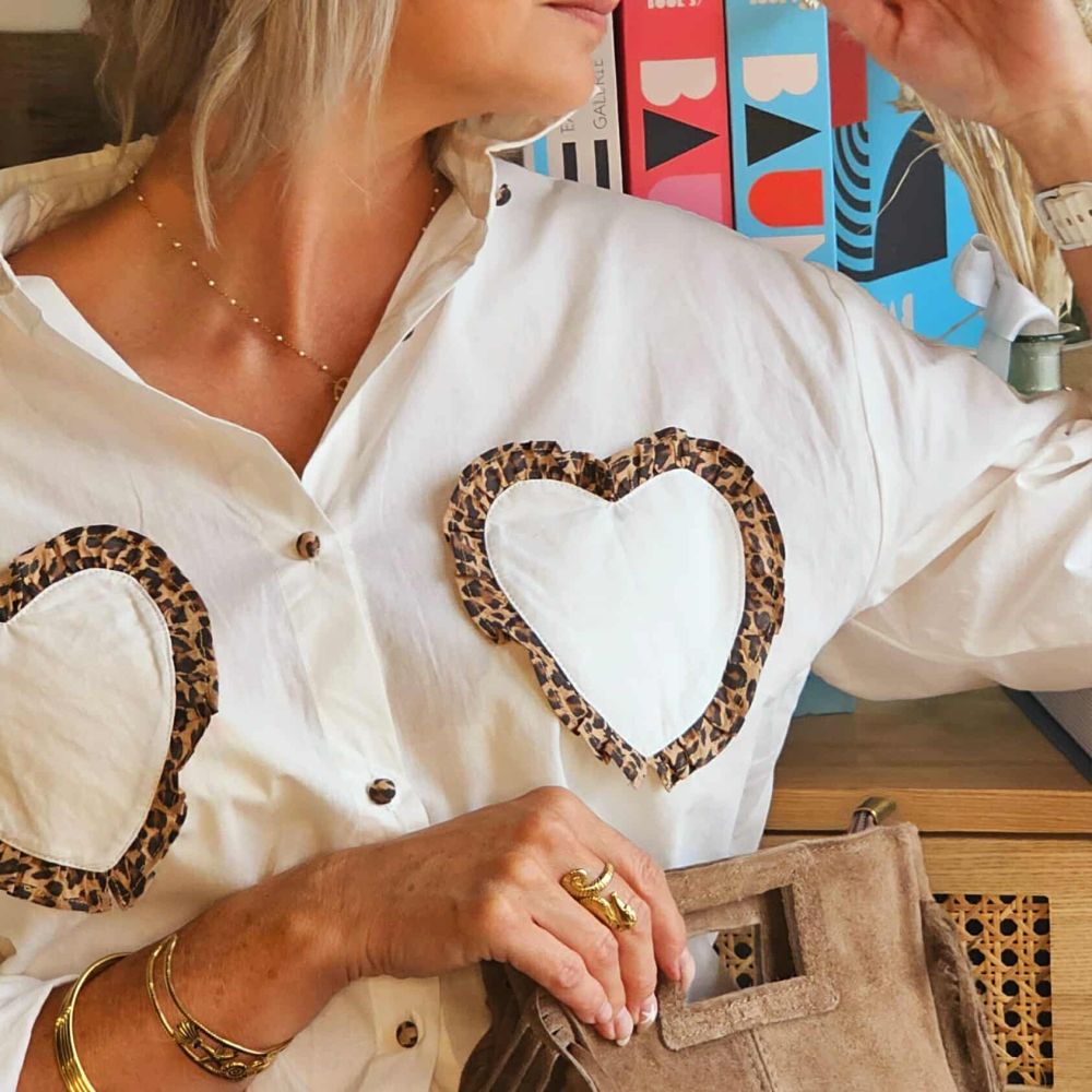- Chemise écru avec détails mode cœur léopard sur la poitrine