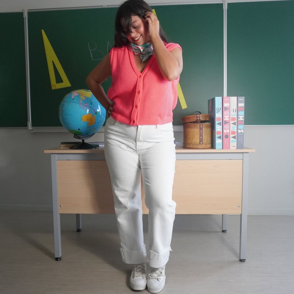 - Charlotte mesure 1m62 et porte le gilet en taille unique, convient jusqu’a un 40-42
