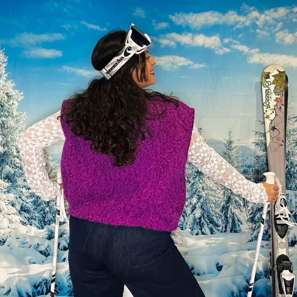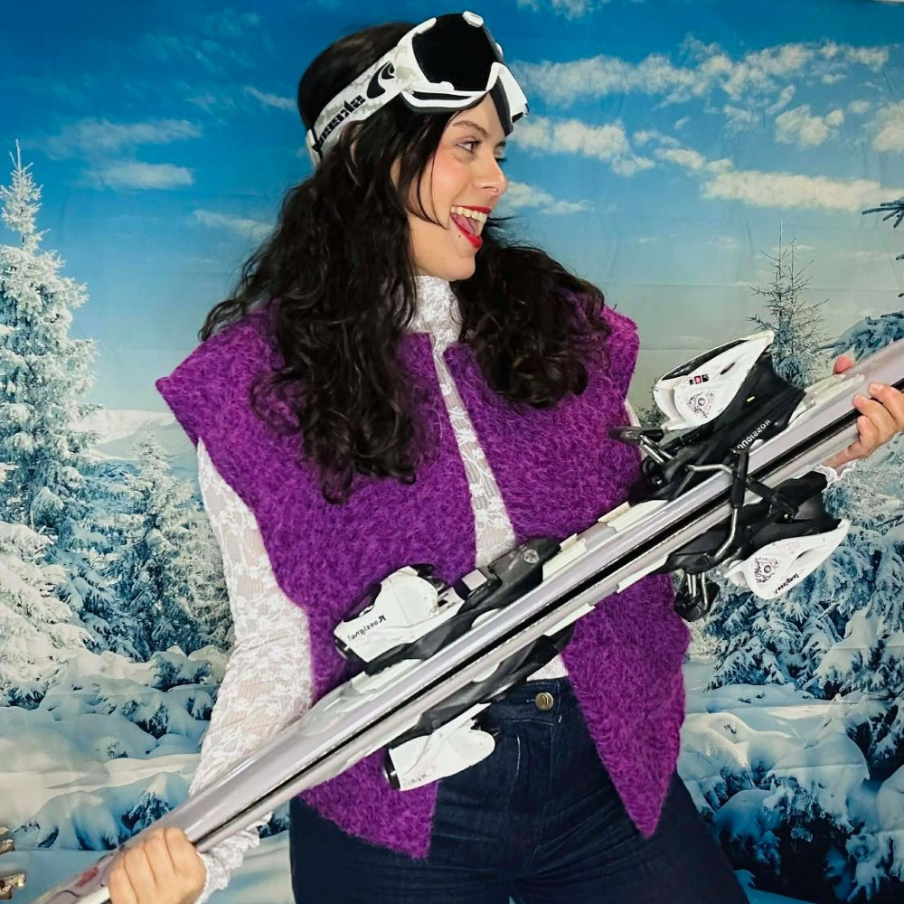 Le gilet Violetta violet sans manches est une pièce forte qui apporte immédiatement du caractère à une tenue. Sa couleur violette intense dynamise le look tout en restant élégante, tandis que sa maille douce et texturée offre un rendu chaleureux et tendance.