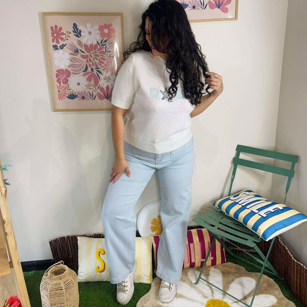 Jean REMY – Jean bleu ciel à rayures blanches