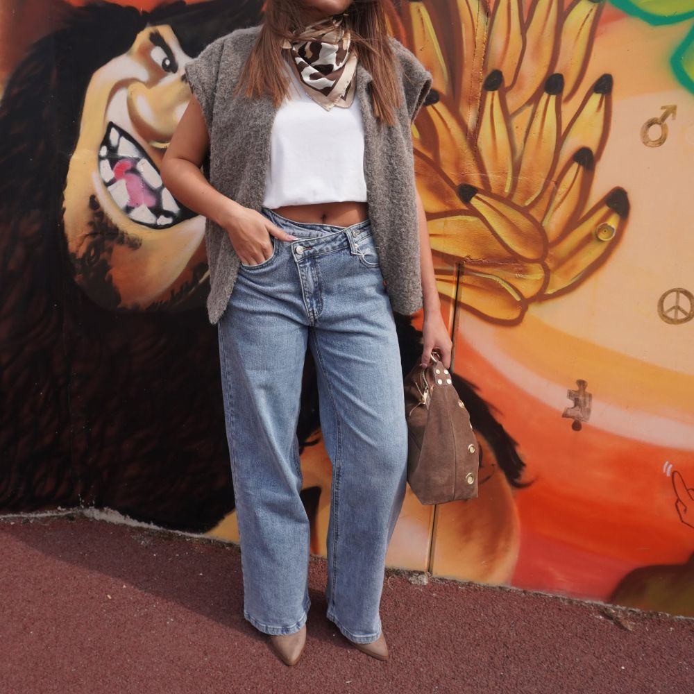 - Jean coupe wide leg (jambe large et fluide)