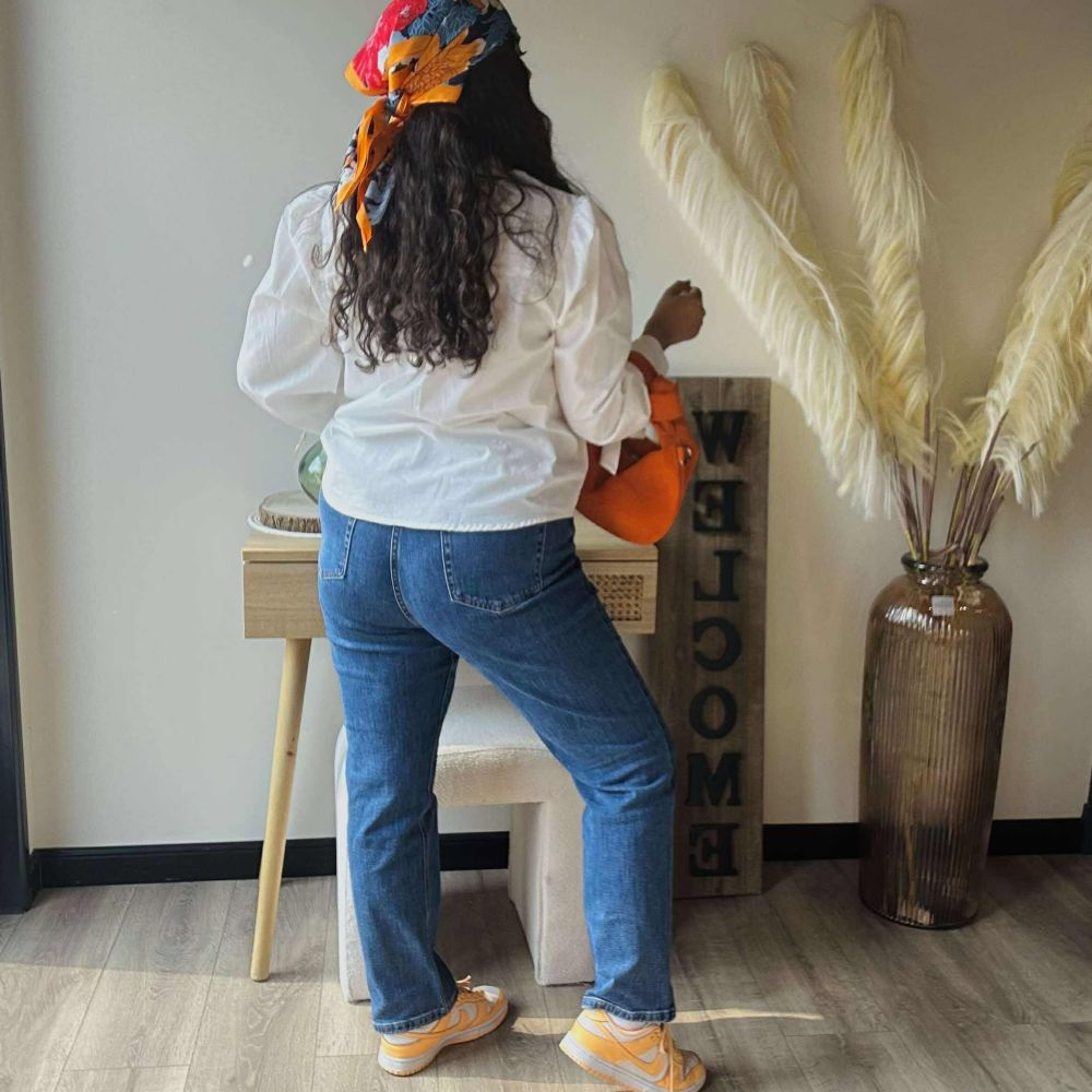 Le jean Laura est une pièce essentielle du dressing féminin. Avec sa coupe droite flatteuse, sa taille haute et son délavage bleu medium, il s’impose comme l’allié parfait pour composer des looks à la fois confortables, féminins et stylés au quotidien.