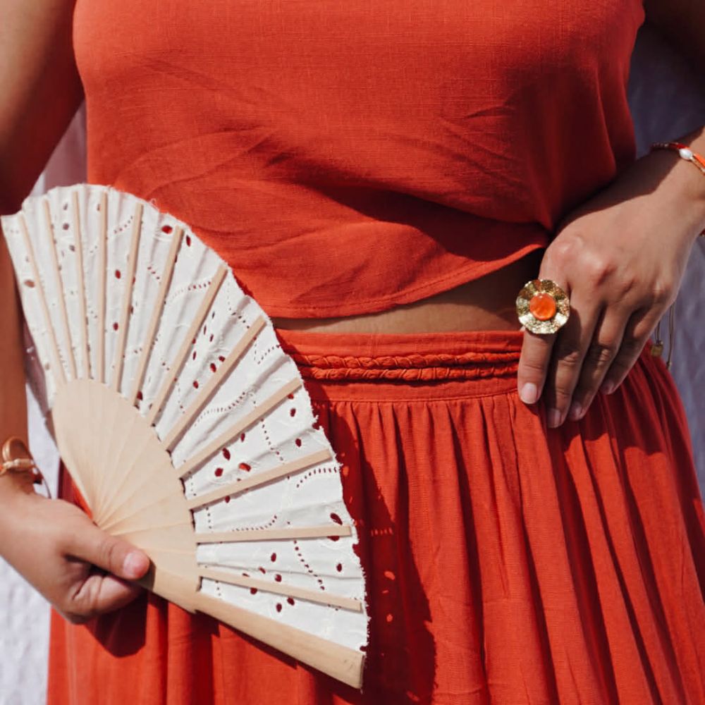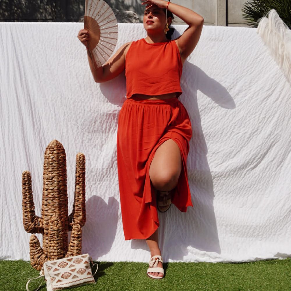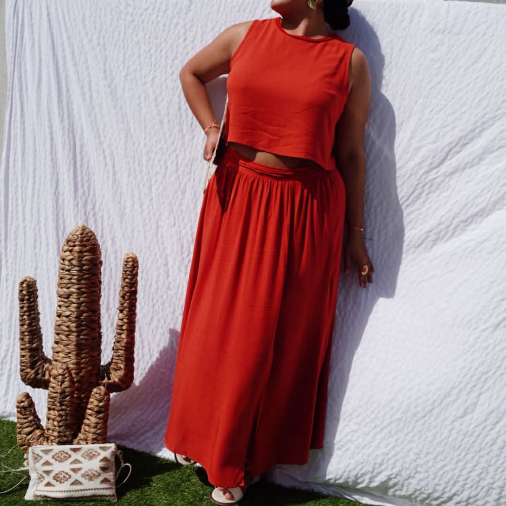 Jupe Rita terracotta fendue avec détail tressé