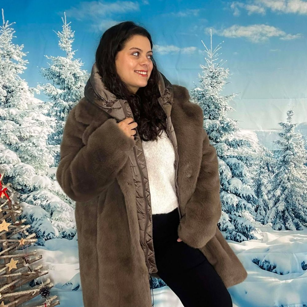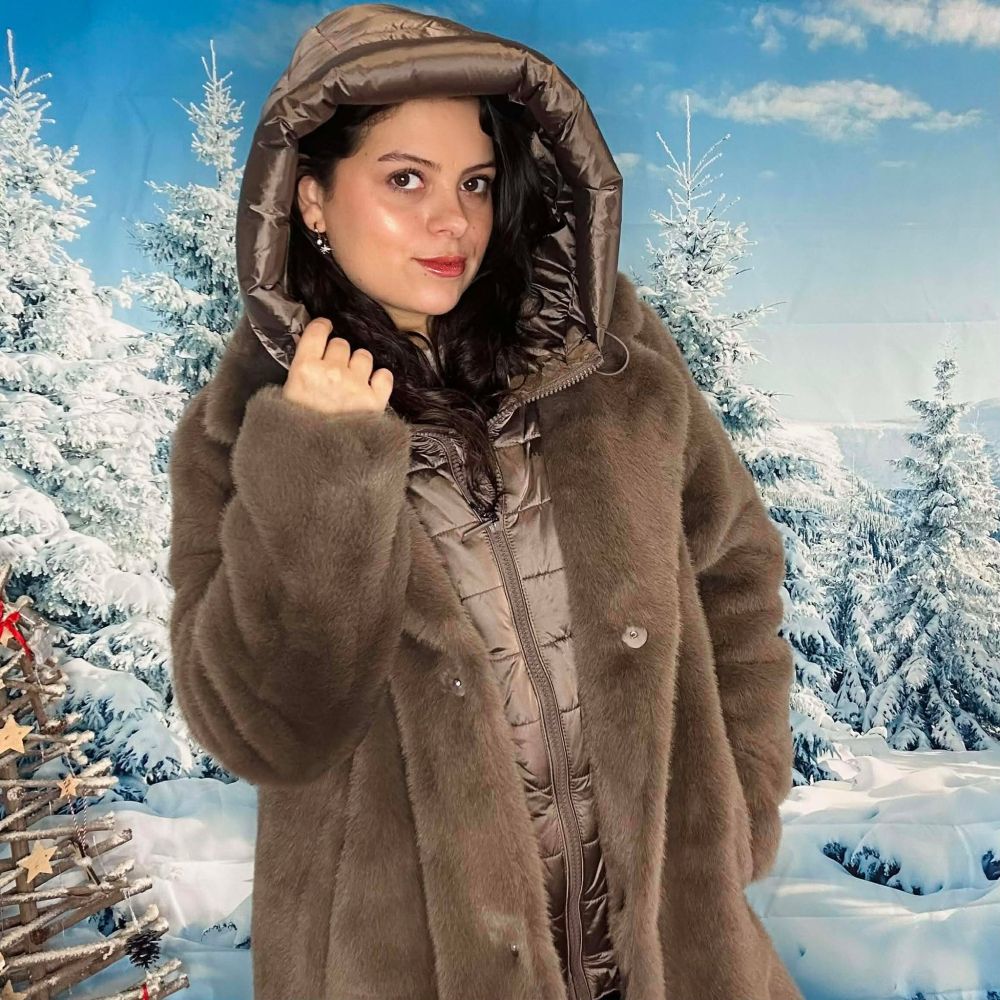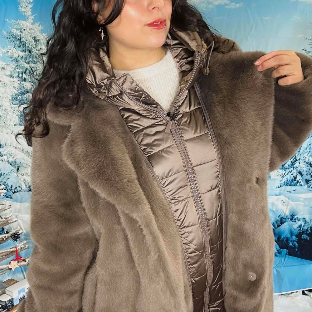 Le manteau Margot est un manteau bi-matière alliant fausse fourrure douce et doudoune matelassée amovible. Il s’adapte facilement à la température : portez-le avec la doudoune pour un manteau hiver chaud ou sans pour un look plus léger et élégant.