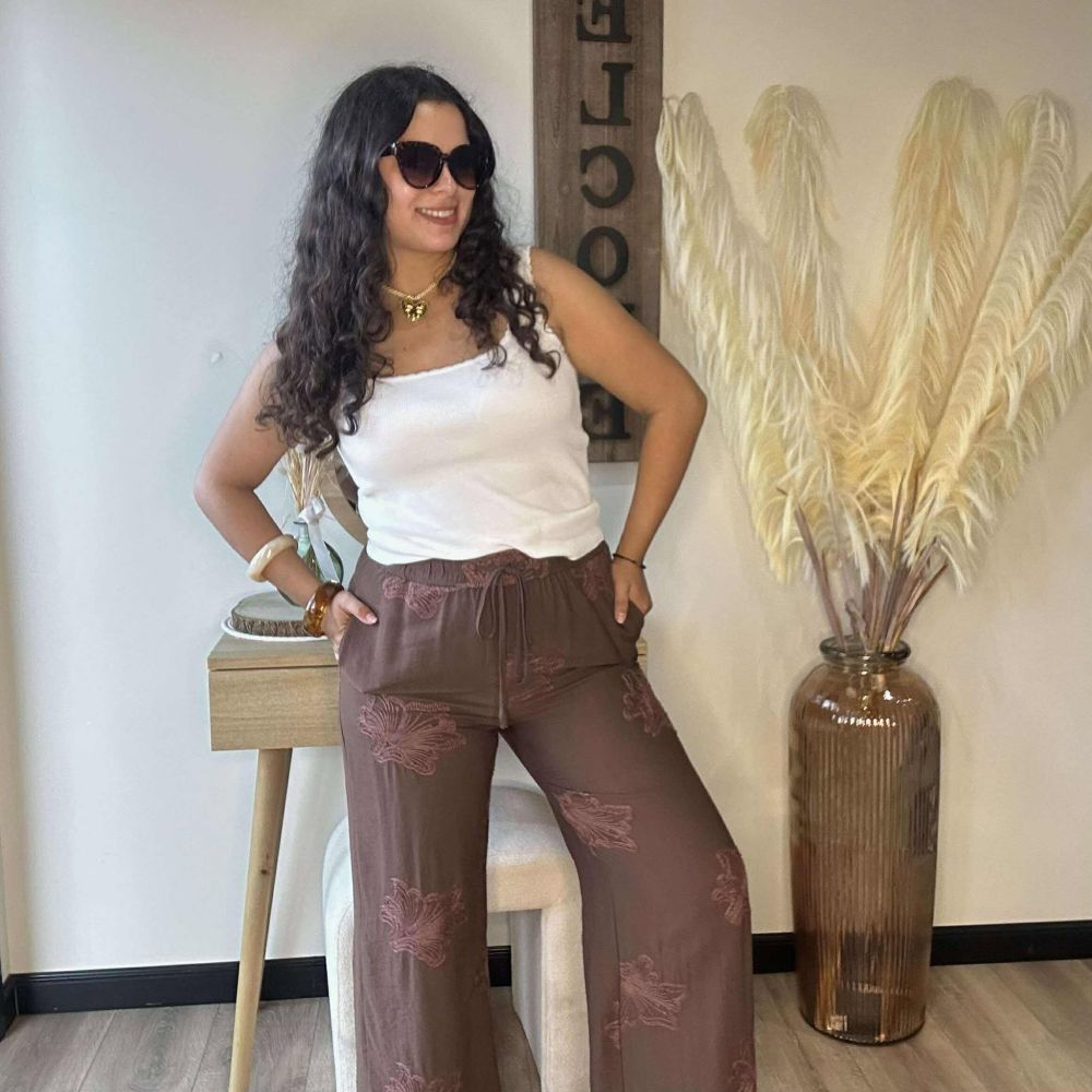 Pantalon Carmen – L’élégance bohème en chocolat brodé