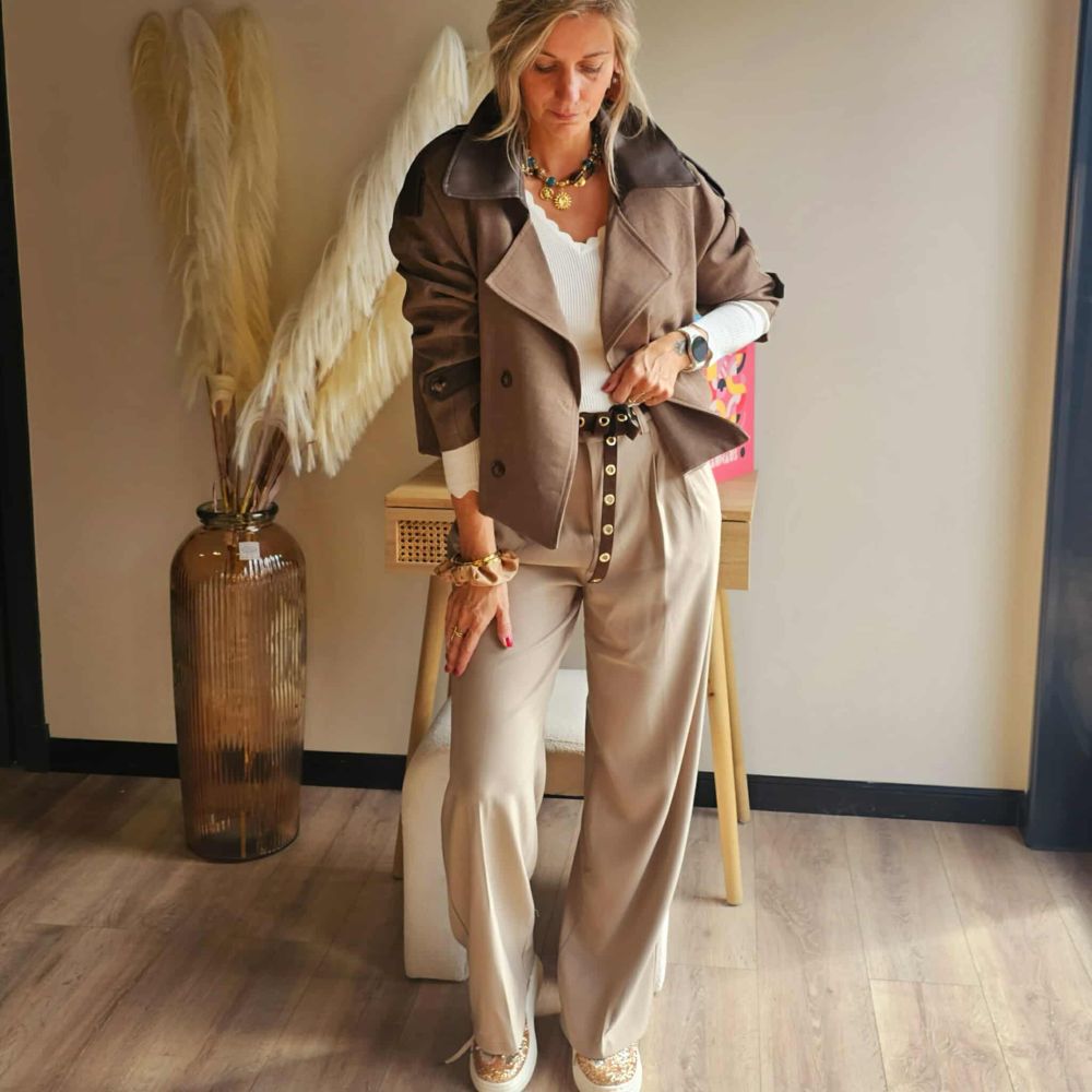 Doté de plis marqués à l’avant, il apporte une touche chic et structurée, idéale aussi bien pour une tenue de bureau que pour une sortie casual.