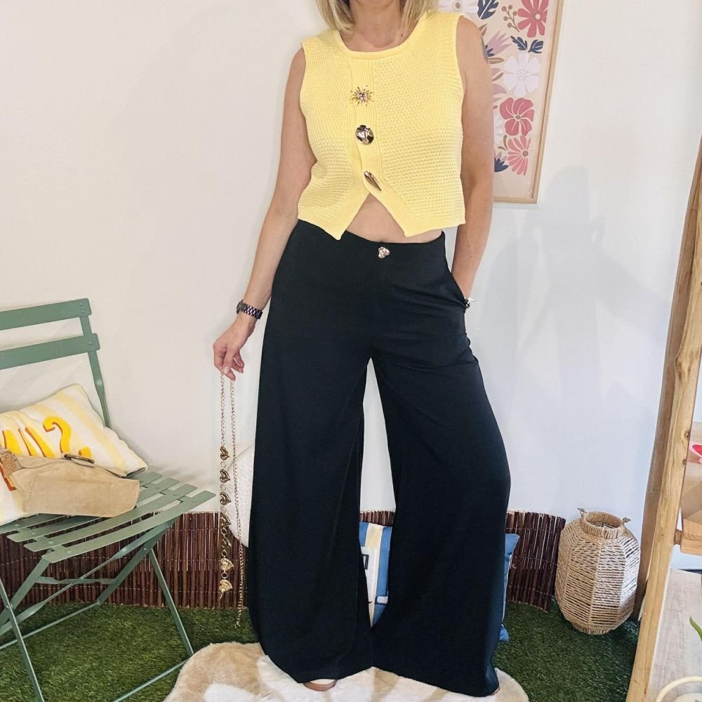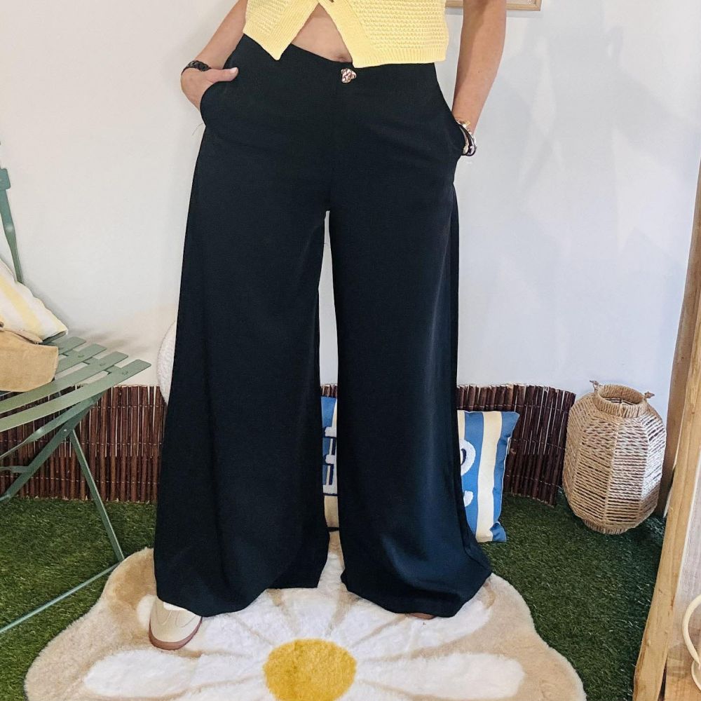 Pantalon Elias noir coupe large avec boutons dorés