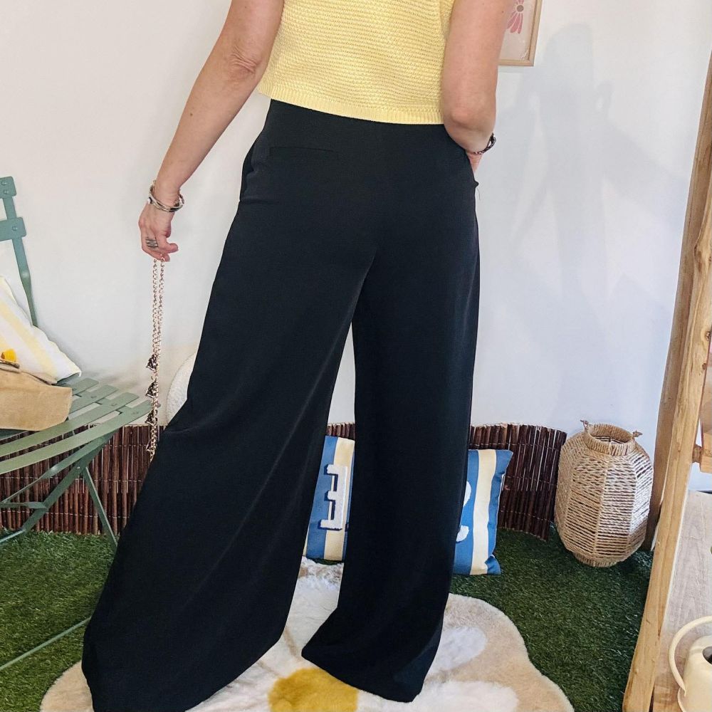 Le pantalon Elias noir est une pièce élégante et moderne qui apporte immédiatement du style à une tenue. Avec sa coupe large et fluide, il allonge la silhouette et offre un tombé chic tout en restant très confortable.