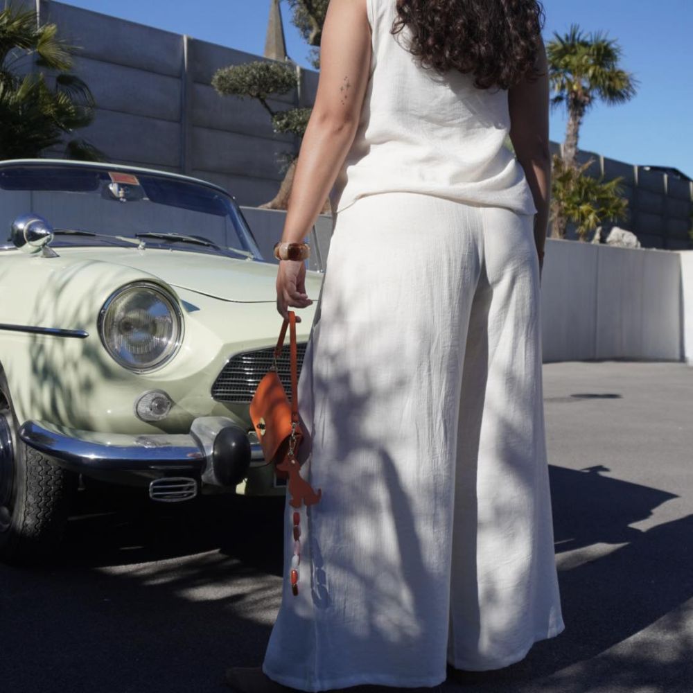 Sa taille est sublimée par une jolie ceinture en paille, apportant une touche naturelle et tendance qui souligne la silhouette avec subtilité. Facile à associer, il se porte aussi bien avec une blouse pour un look casual chic qu’en ensemble avec le top Erika pour une tenue harmonieuse et habillée.