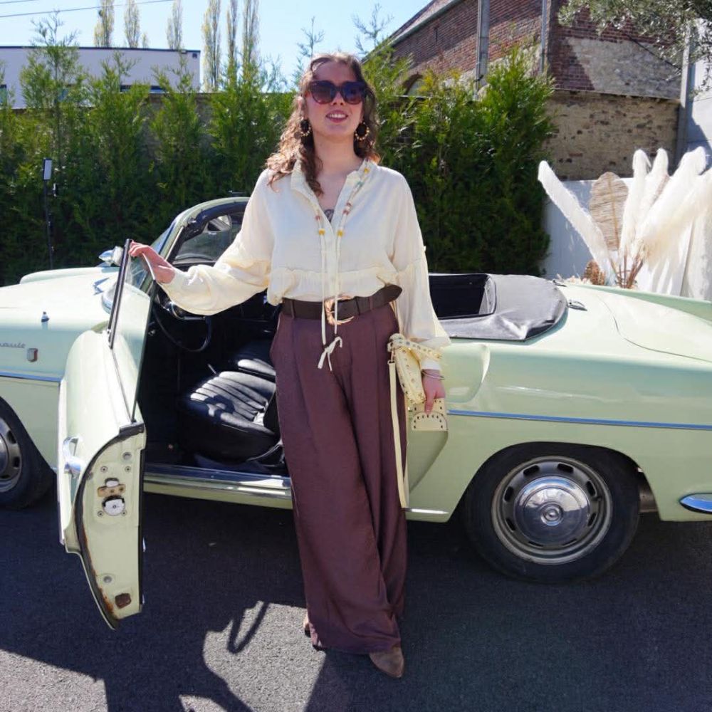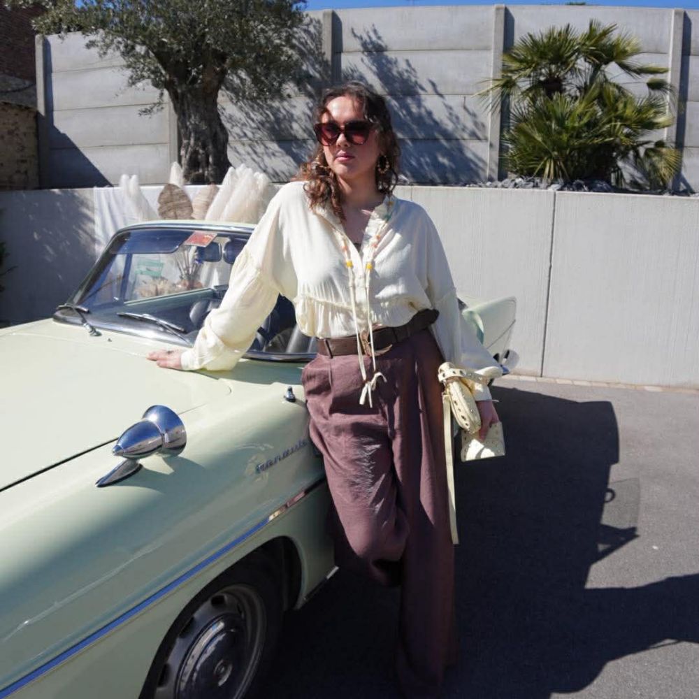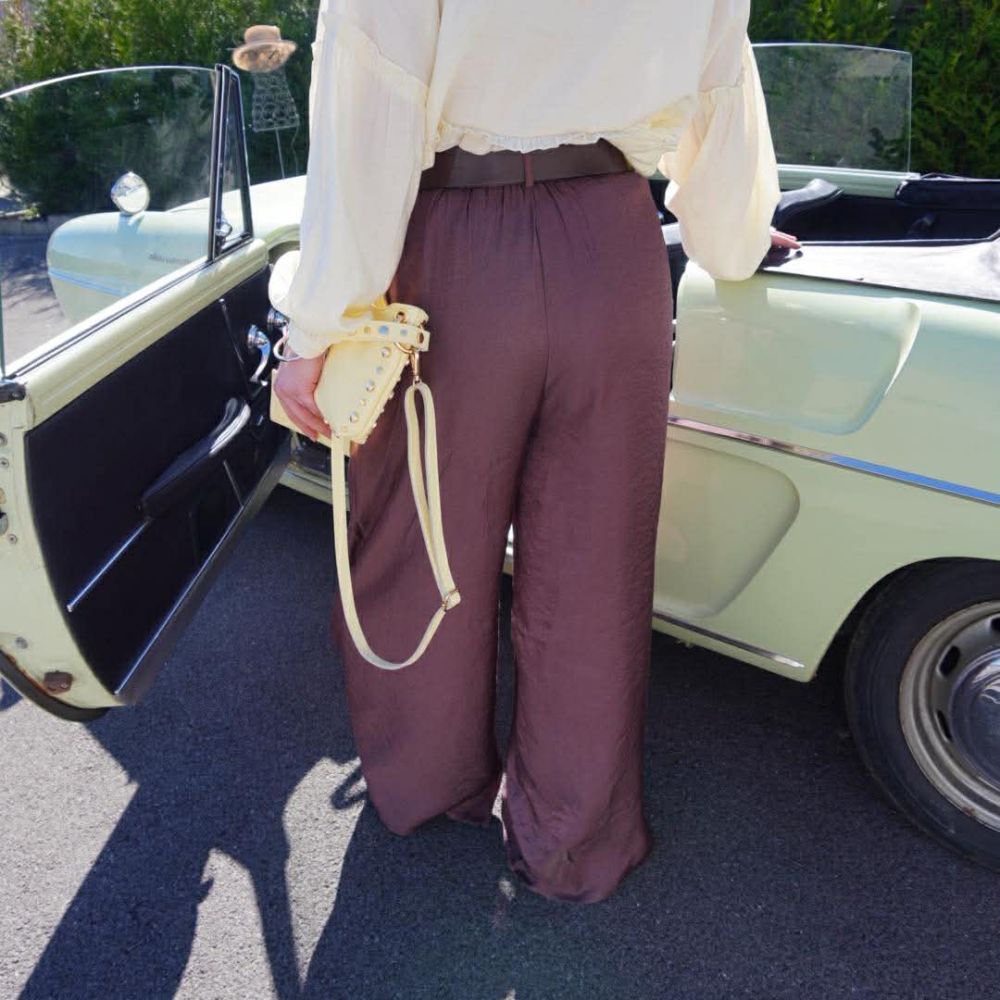 Pantalon Giulia marron satiné – Coupe large vendu avec sa ceinture