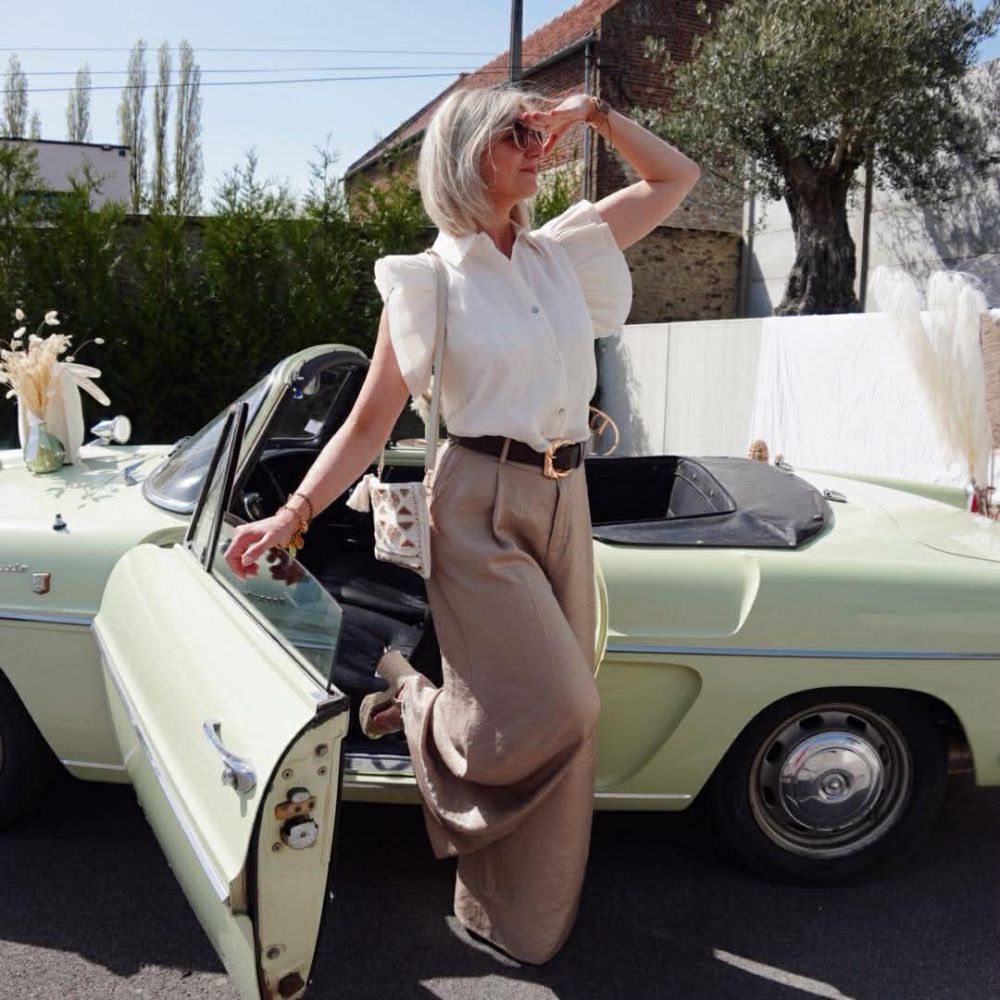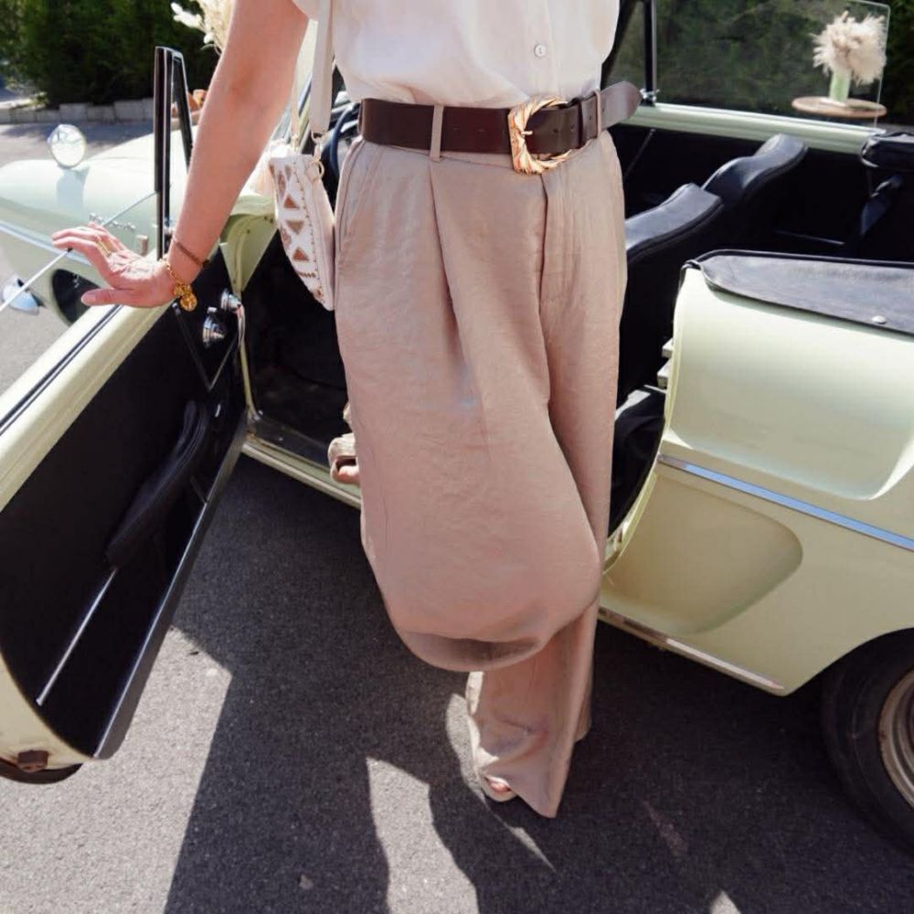 Sa coupe large et aérienne apporte du mouvement et allonge visuellement la jambe, tandis que sa taille structurée avec ceinture vient marquer délicatement la silhouette pour un rendu féminin et raffiné.