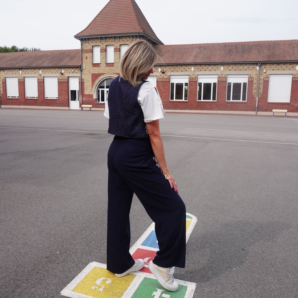 Le pantalon tailleur LUKA bleu marine incarne l’élégance intemporelle avec une touche moderne et décontractée. Conçu dans une coupe wide leg fluide et confortable, il allonge la silhouette tout en apportant une allure chic et féminine. Sa taille haute légèrement plissée et sa ceinture élastiquée avec cordon à nouer permettent un ajustement parfait, idéal pour sublimer toutes les morphologies.