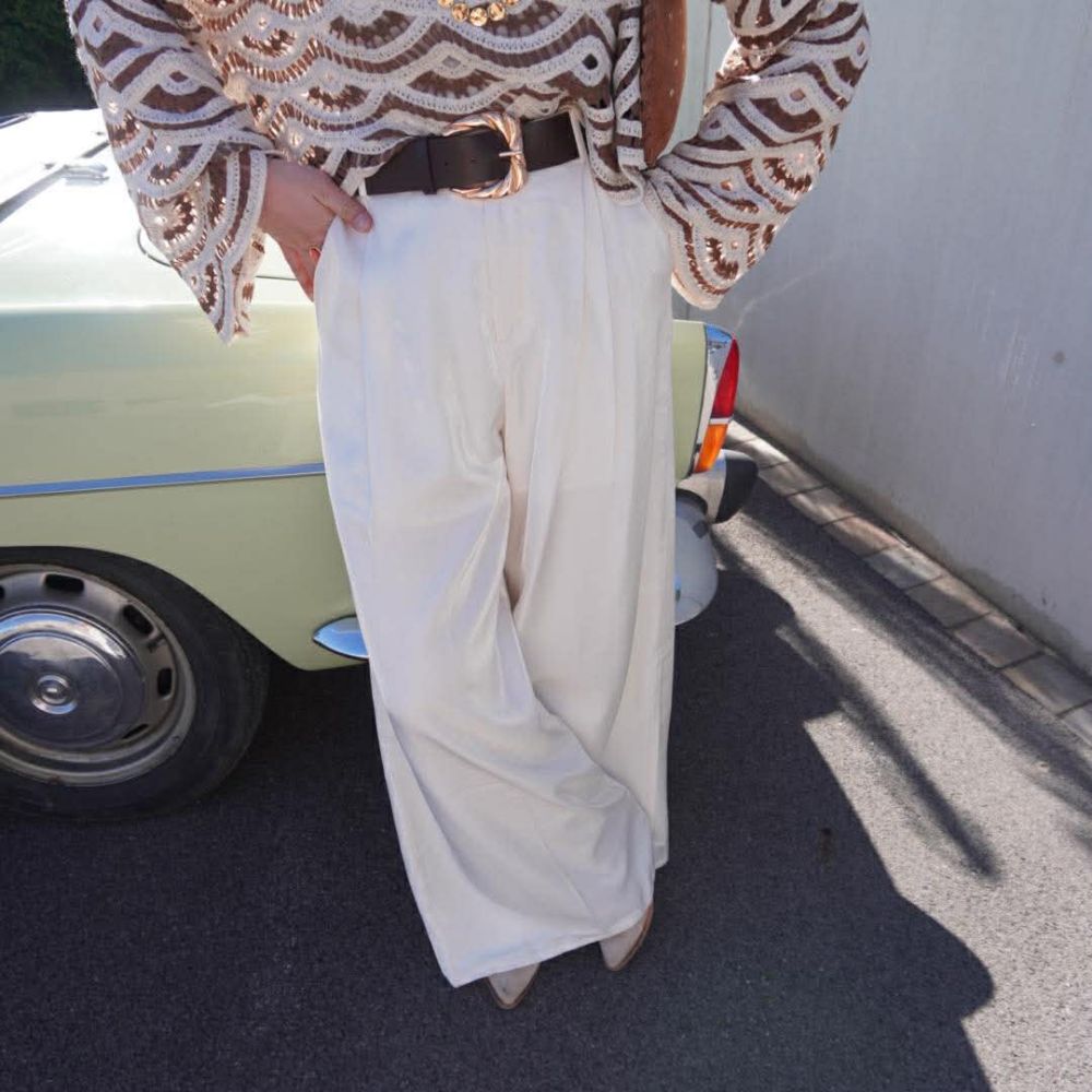 Pantalon Madelaine écru satinée – coupe large avec ceinture