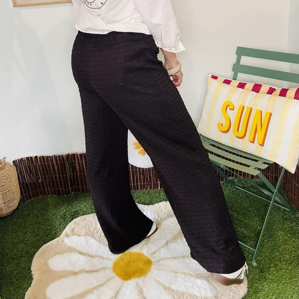 Doté d’une taille élastique, il s’adapte parfaitement à toutes les morphologies et offre un confort optimal tout au long de la journée. Sa coupe large et fluide allonge la silhouette et assure une allure moderne et tendance !