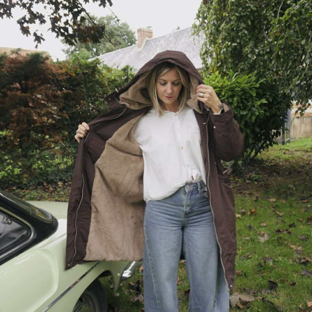 Sa coupe longue et féminine assure confort et modernité, tandis que ses grandes poches pratiques et sa capuche enveloppante en font une alliée parfaite pour le quotidien.