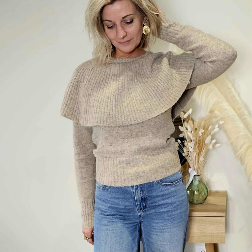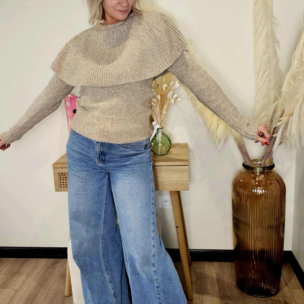 Sa maille douce et chaude, sublimée par un col effet cape texturé, apporte une touche de style unique et féminine.