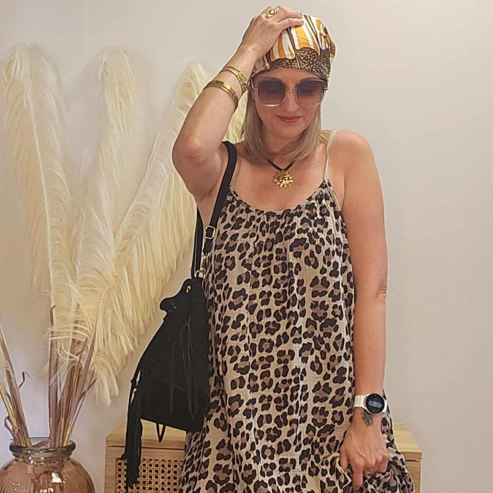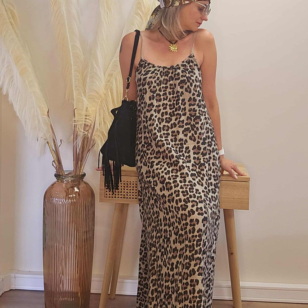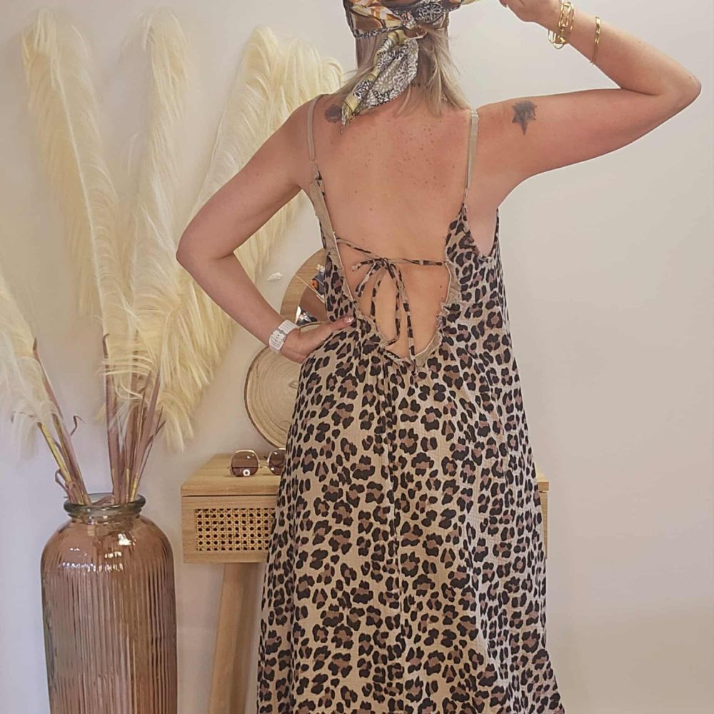 Robe longue léopard dos nu – Esprit bohème sauvage