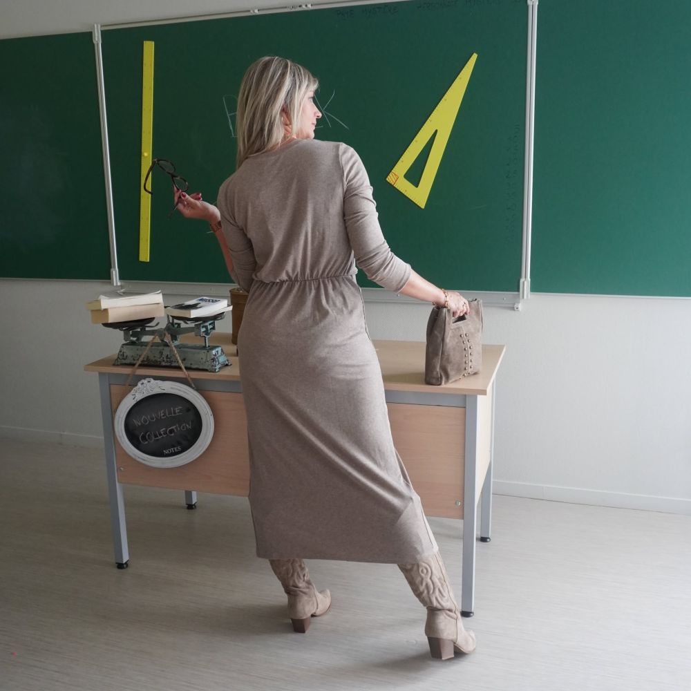 La robe Lola incarne parfaitement le style bohème chic avec une touche moderne et raffinée. Confectionnée dans une maille douce et fluide, elle épouse délicatement les formes tout en offrant un confort optimal. Son détail drapé sur le devant, subtilement noué à la taille, crée un effet élégant qui sublime la silhouette et affine la taille.