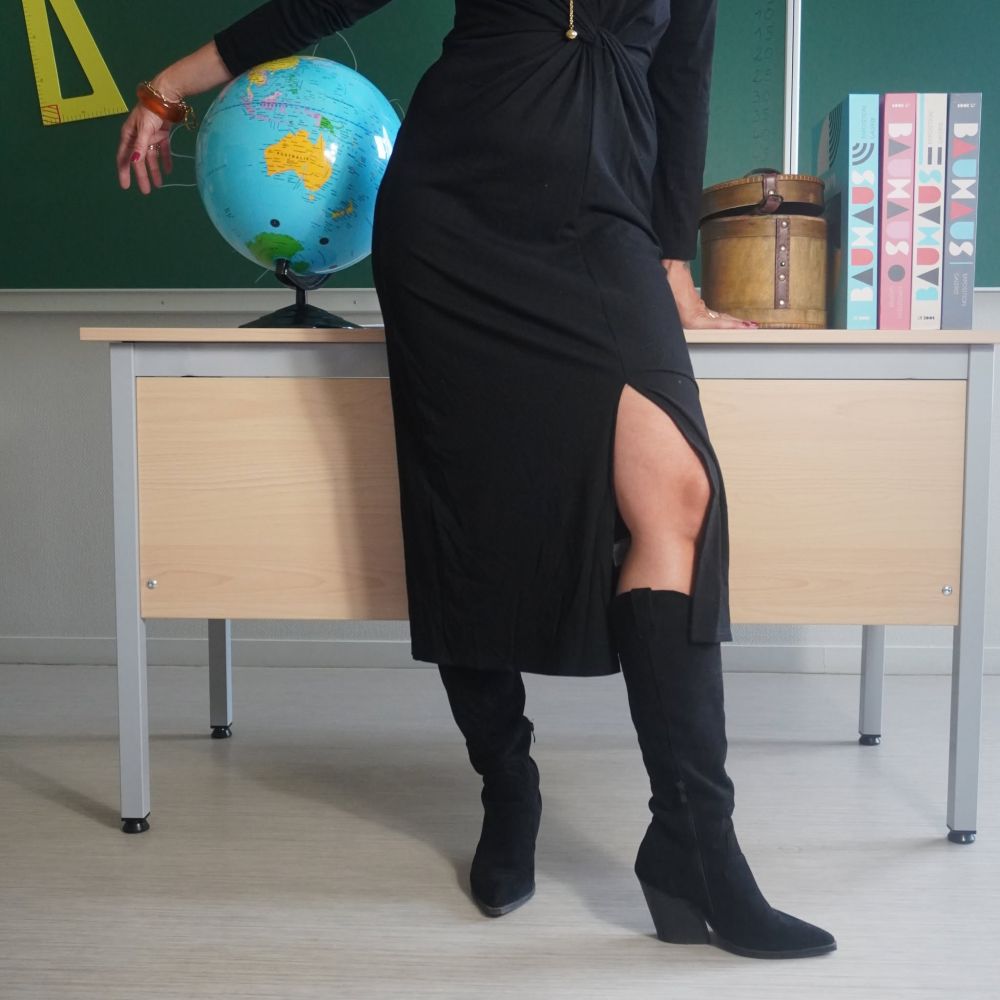 Le détail qui fait toute la différence : une fente féminine sur le côté, qui dévoile la jambe avec raffinement et apporte une allure séduisante.