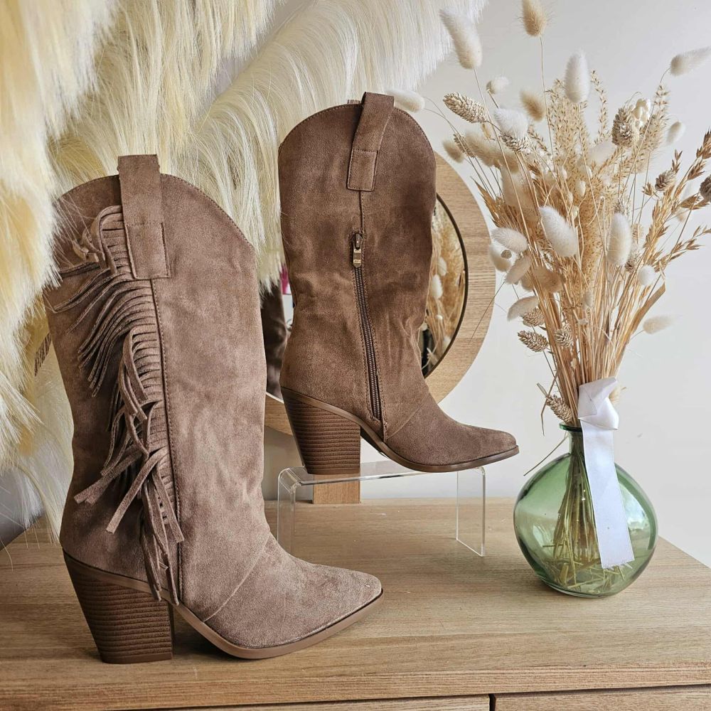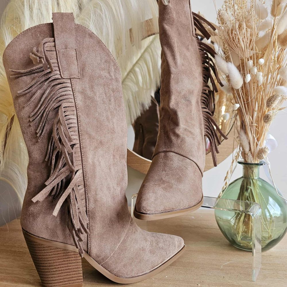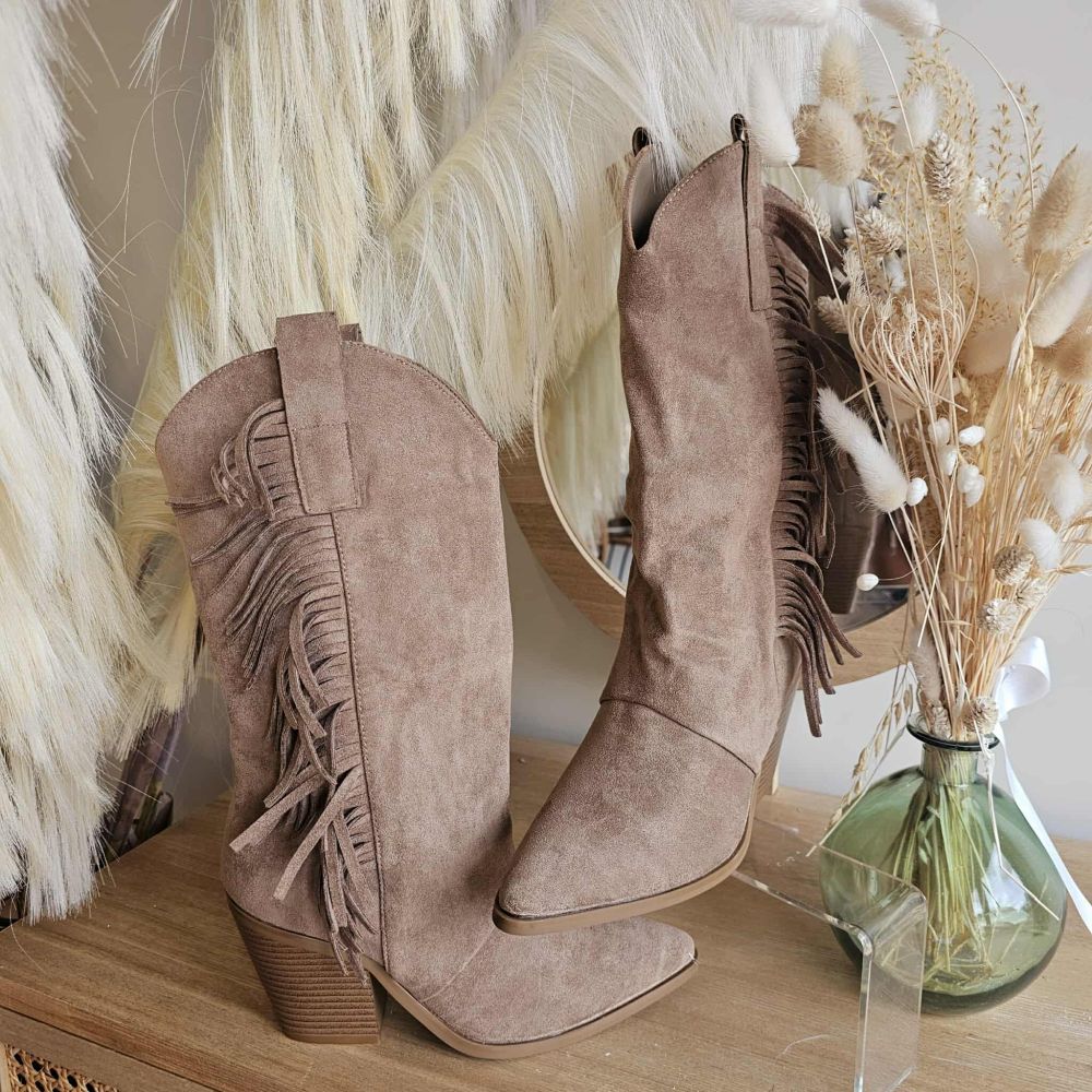 Santiags Diego – Suédine Taupe à Franges