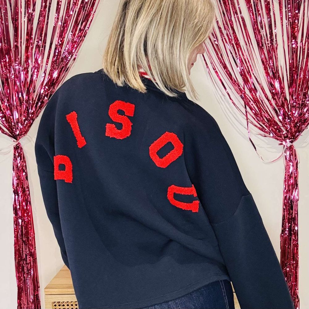 Sweat BISOU – Bleu marine & broderie rouge