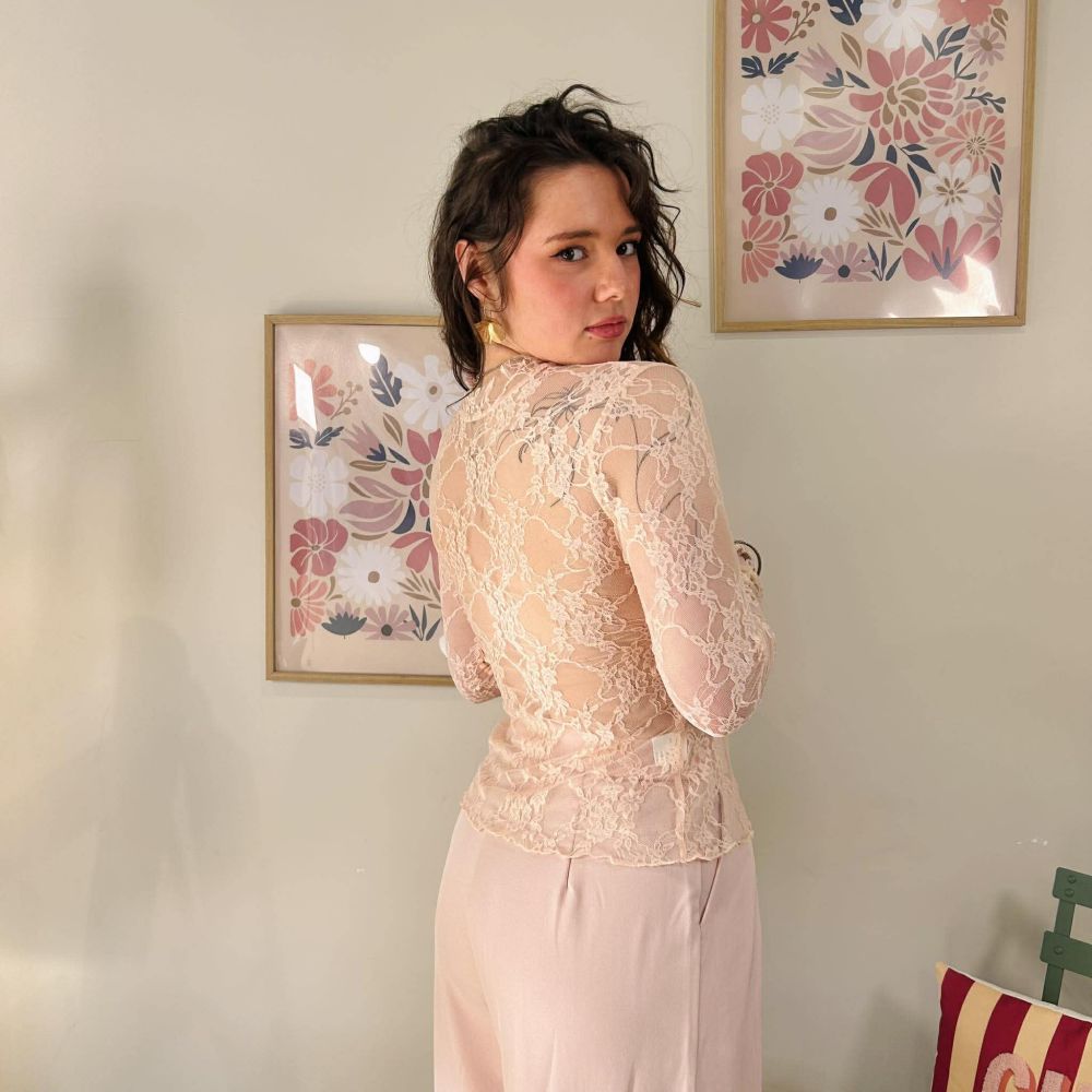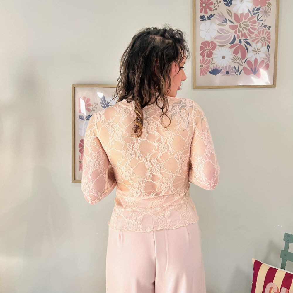 Top en dentelle rose poudré transparent