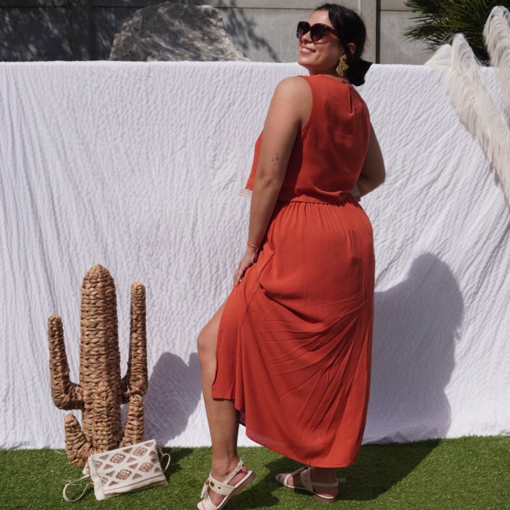 Top Rita terracotta avec col tressé