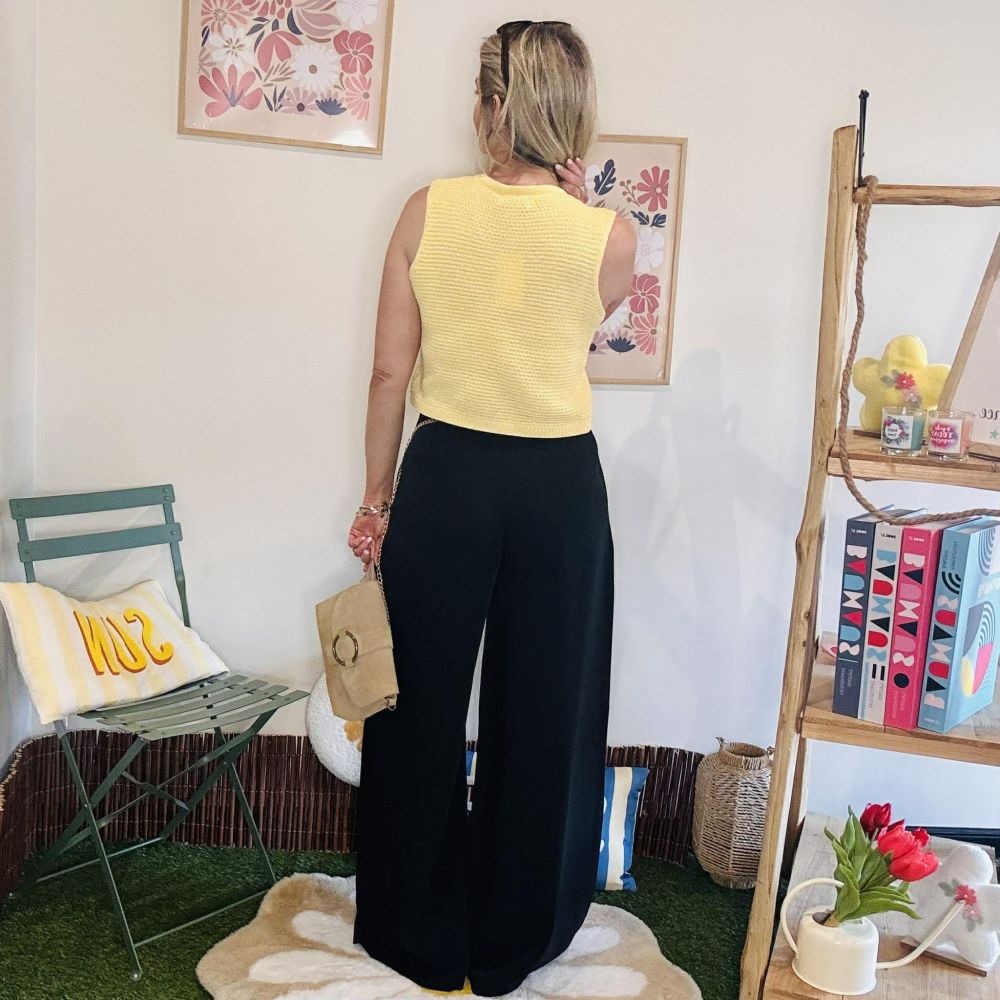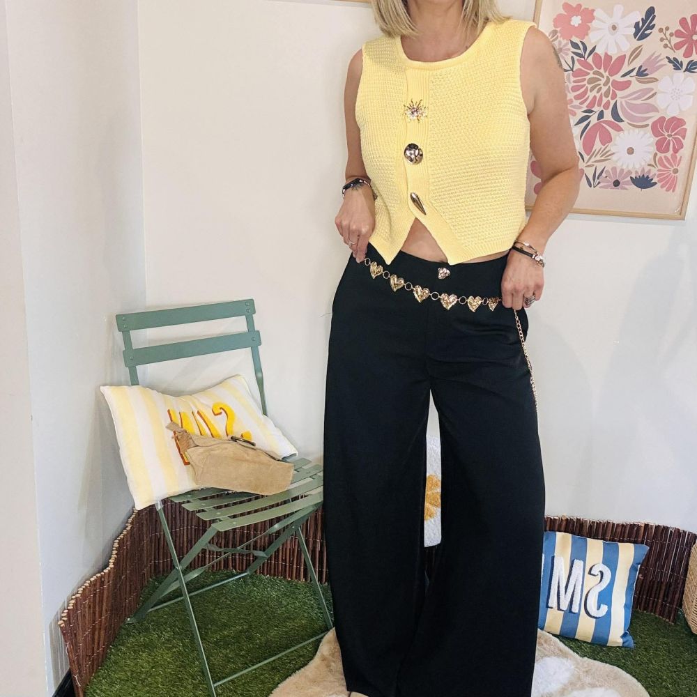 Top Summer jaune en crochet sans manches – boutons dorés soleil