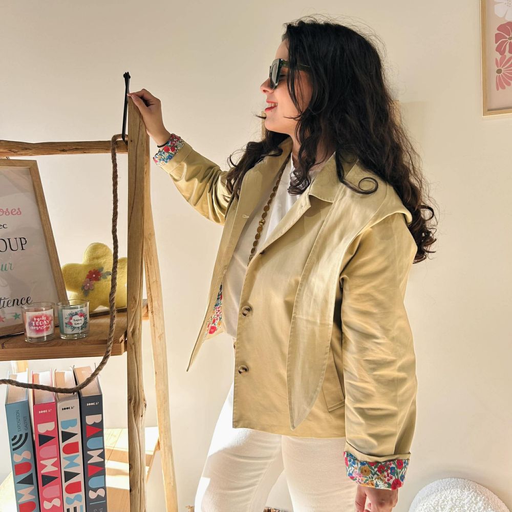 Son beige doux et intemporel s’accorde avec toutes tes tenues, tandis que sa doublure fleurie colorée apporte cette touche féminine et raffinée qui fait toute la différence.