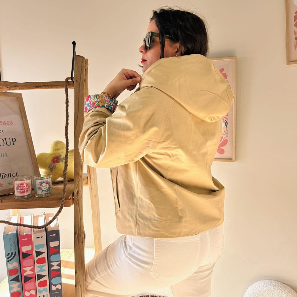 Trench Alya Beige – Capuche & Doublure Fleurie