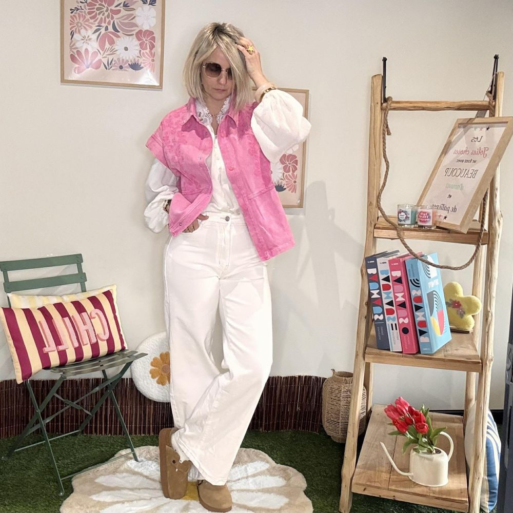 Craque pour la veste sans manches Aramine, une pièce forte qui illumine instantanément une tenue. Avec sa belle teinte rose éclatante, sa coupe structurée et ses jolis détails brodés, elle apporte une touche féminine, originale et tendance à ton dressing.