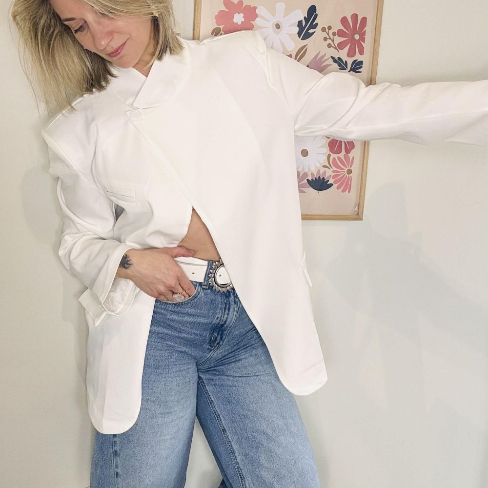 Blazer MONA blanc – Coupe asymétrique élégante